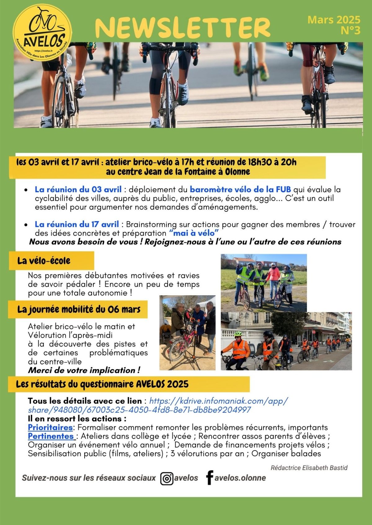 AVELOS rappelle que son but est de développer l'usage sécurisé du vélo comme moyen de déplacement quotidien au même titre que la voiture. Sa cible n'est donc pas le cycliste occasionnel, amateur de balade que nous sommes bien sur ravis de compter parmi les cyclistes.
